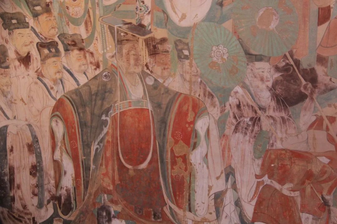 莫高窟第220窟 帝王大臣图此窟每幅壁画都是上乘之作,其中的维摩诘像是人物画中的精品,一幅帝王和大臣图可以与美术史中阎立本的“帝王图”一样精彩。