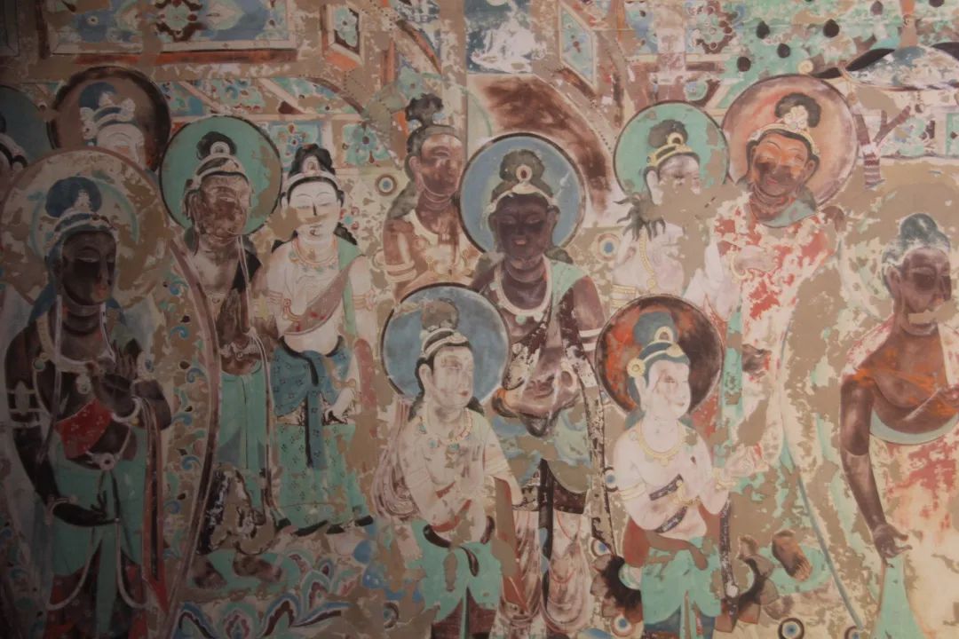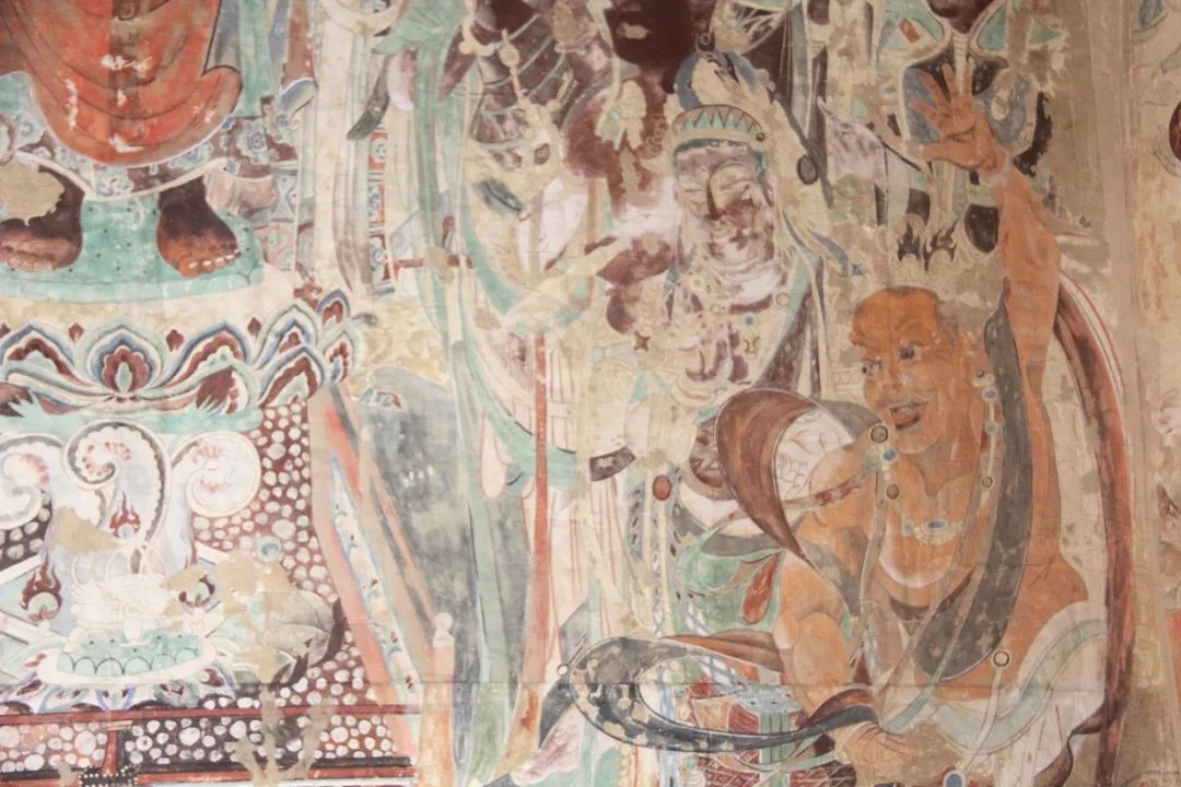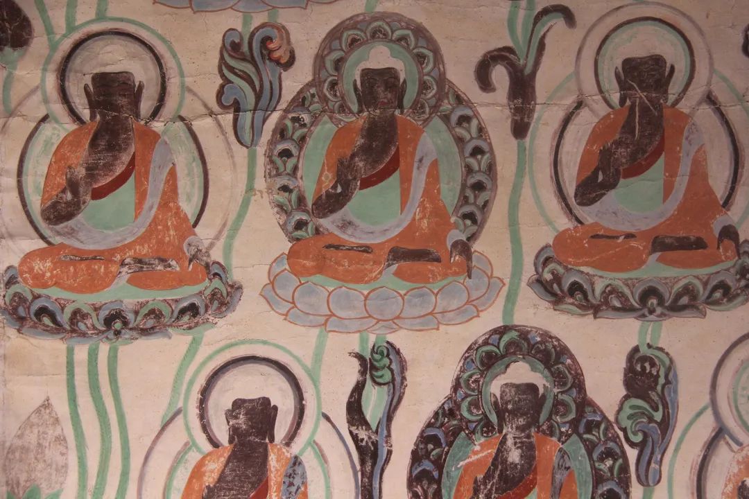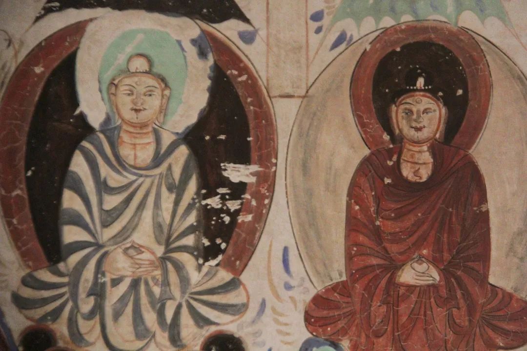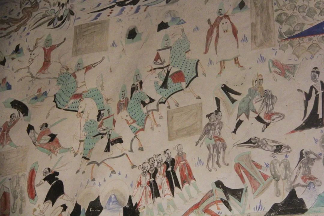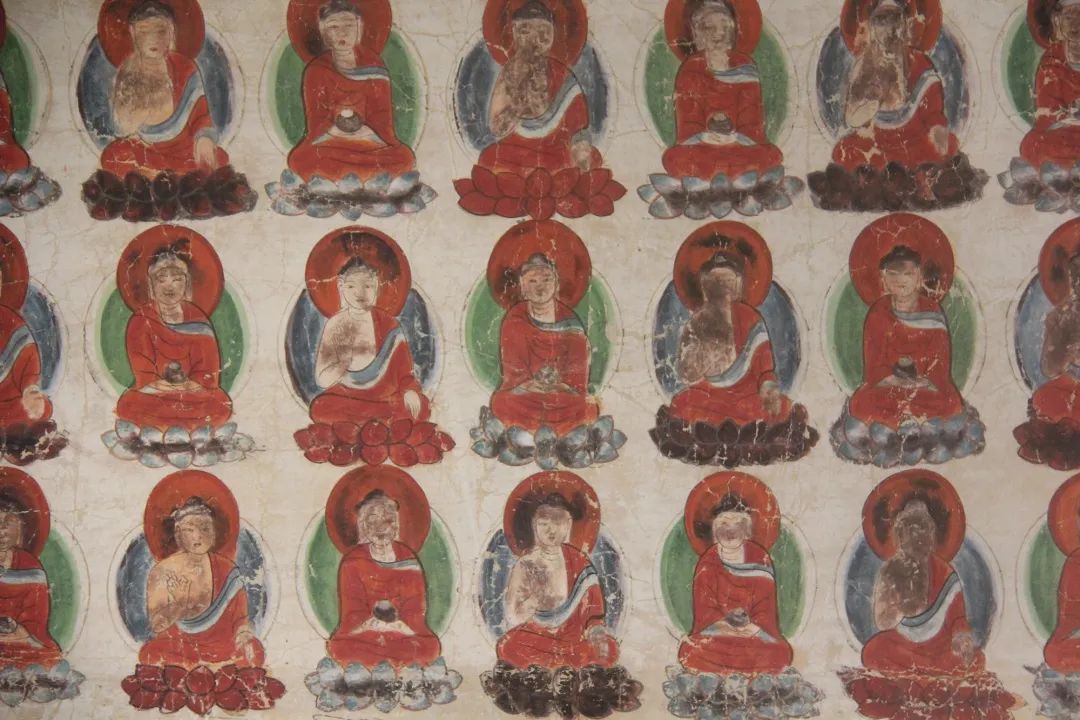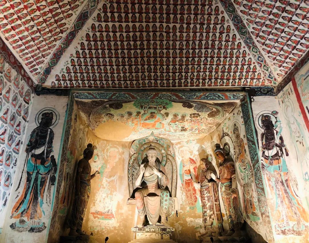 旁边墙上画千佛中央释迦说法图,其中就在1924年被美国人华尔纳盗劫两方。