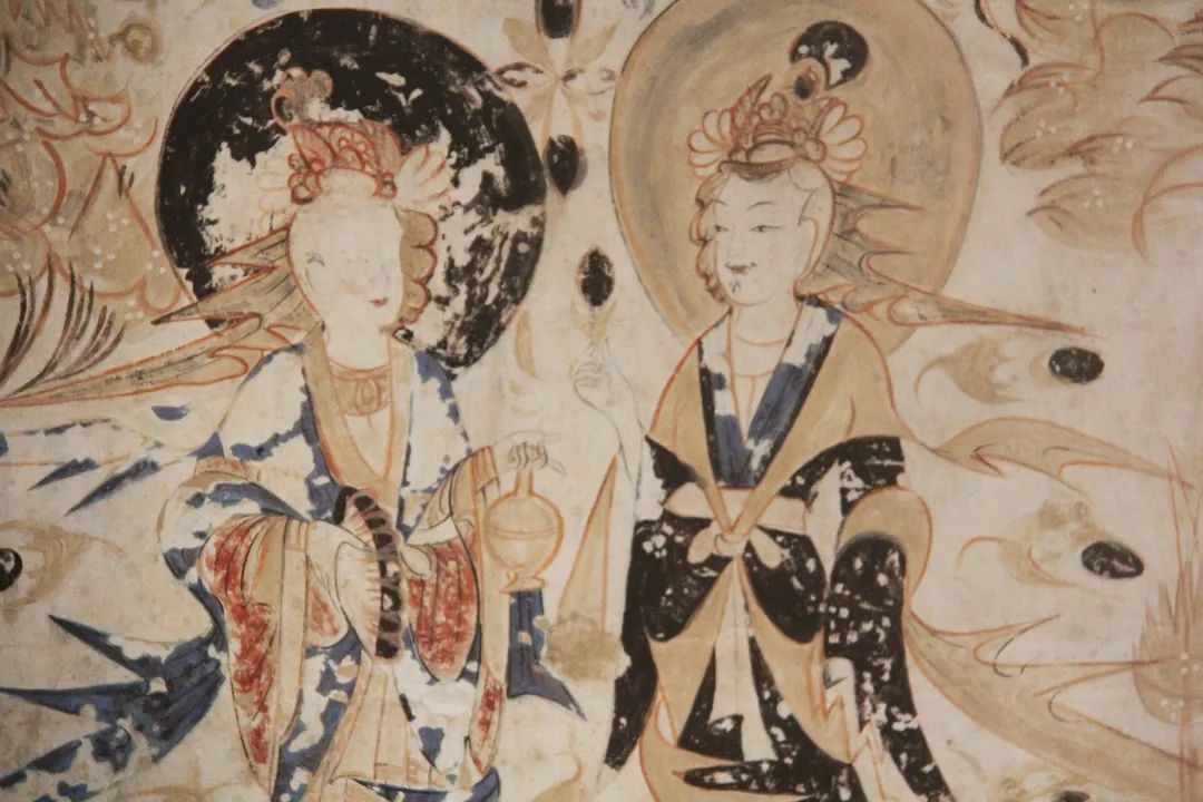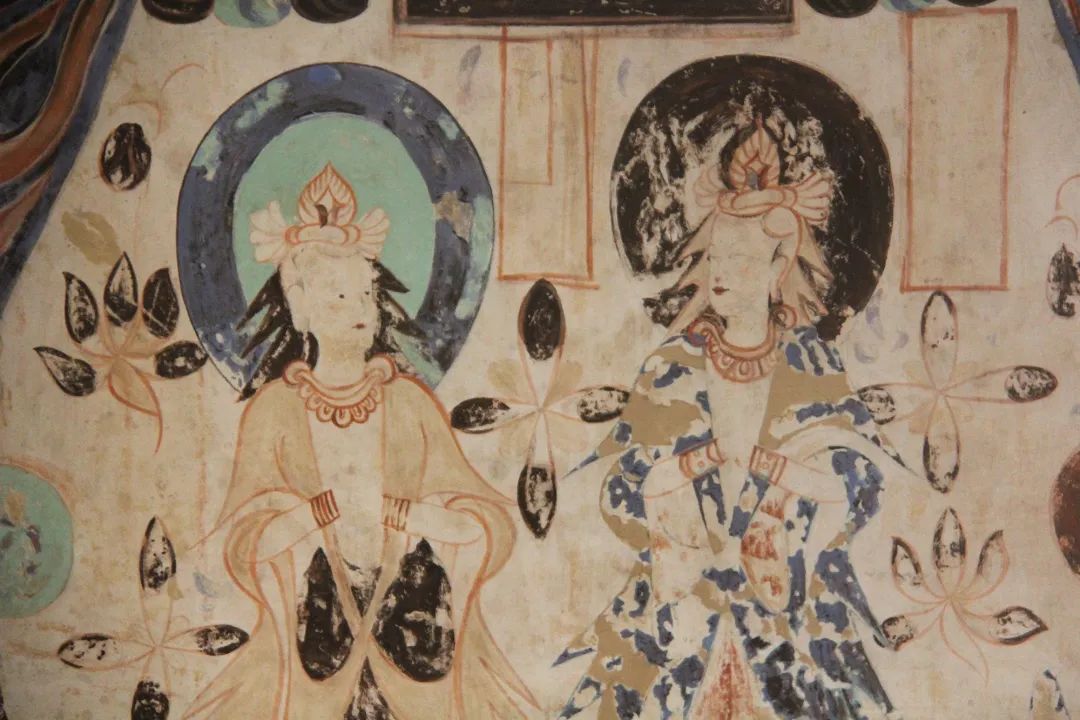 直到上世纪上半叶,后来覆盖的的壁画开始出现脱落。1944年,当时敦煌艺术研究所的工作人员发现,脱落后的壁画隐隐约约露出下面还有一层色彩艳丽的壁画。