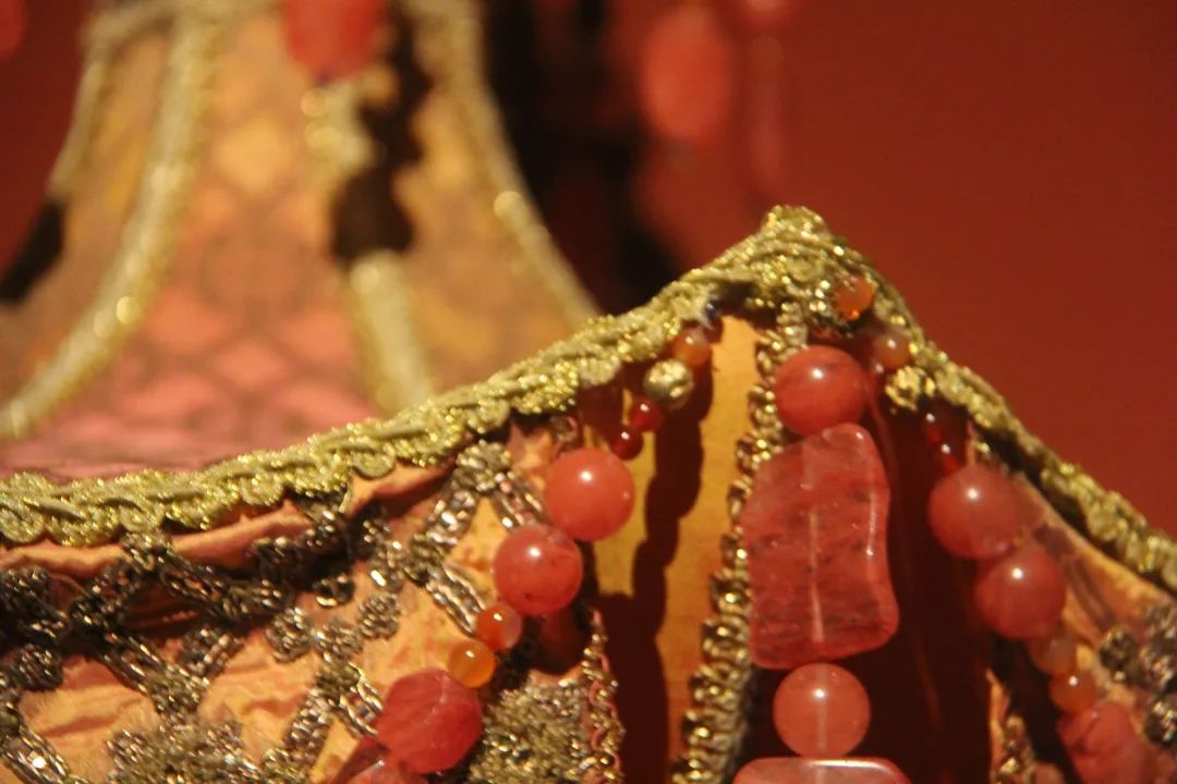 幔盖(仿制)这件华盖依据敦煌藏经洞出土绢画上的华盖形象而制作,绢画原件收藏于印度新德里国家博物馆。