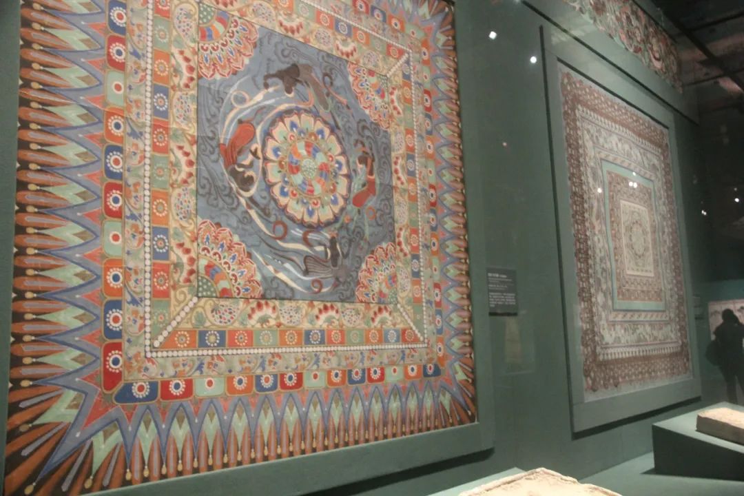 现场展出的敦煌壁画藻井图案东雁翅楼——保护传承