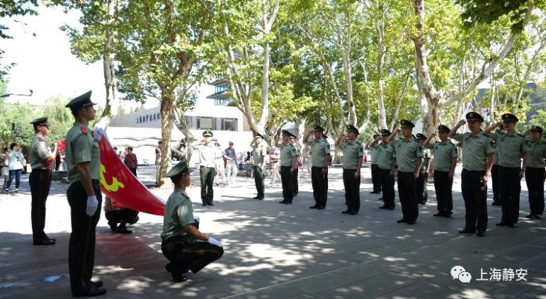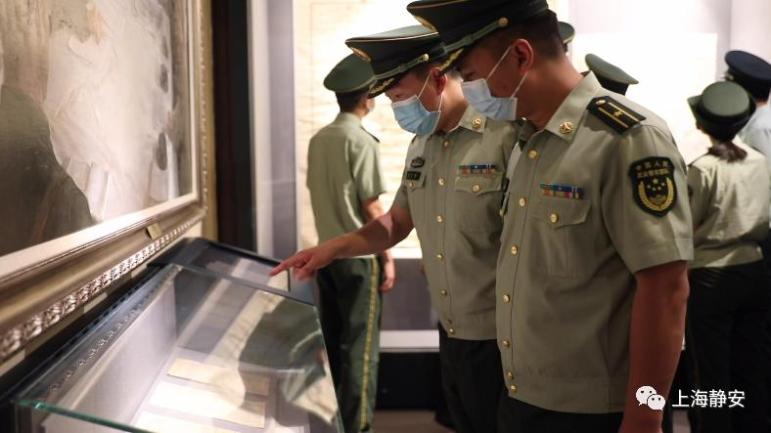 参观结束后,武警官兵们来到淞沪抗战纪念碑前,举起右拳、面向鲜红的党旗庄严宣誓,重温入党誓词,铿锵有力的声音回荡在纪念馆上空。