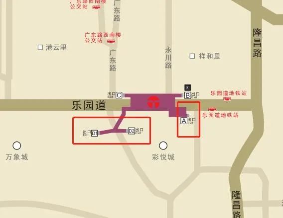 【万象城、彩悦城有了直通地铁口】地铁6号线乐园道站A、D出入口已完成施工及验收,具备开通条件,2021年9月22日起正式开通运营。届时,乘客可通过乐园道站A出入口去往宝丽金大酒店、天津青少年活动中心、隆昌路等地,通过D出入口进入万象城(D1出入口)和彩悦城(D2出入口)。(详情)