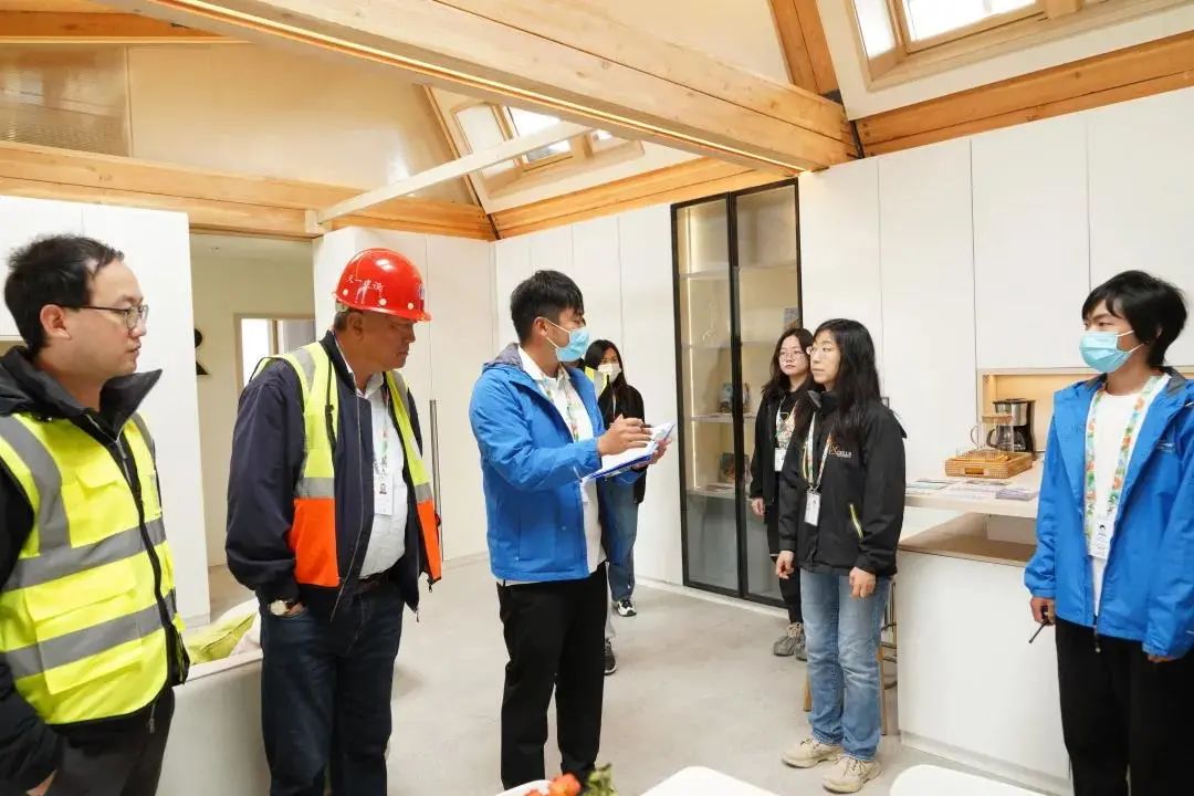 随后,组委会田原老师以及赛队合作伙伴天津大学建筑设计规划研究总院有限公司三位代表沈彬、陈焱、刘旭来到R-CELLS参观,一同见证落成。