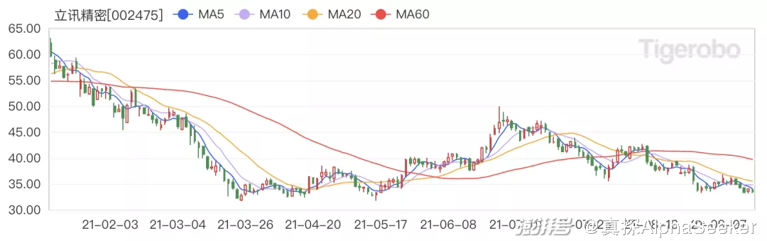 iPhone 13而坏消息是,作为与苹果“同呼吸共命运”的供应链企业似乎与苹果荣辱与共的时刻越来越少——去年发布的iPhone 12虽然大卖,但果链企业的股价却始终整体低迷;在今年苹果股价创下历史新高的时刻,不少A股苹果供应链企业股价大幅回撤甚至有人几近腰斩。自今年1月14日阶段性高点以来,立讯精密、信维通信、领益智造等个股累计跌幅超过40%,蓝思科技、鹏鼎控股、长盈精密等个股累计跌超30%。据统计,2021年半年报中,多家苹果供应链公司业绩大幅下降,37%的果链公司净利润同比下滑。