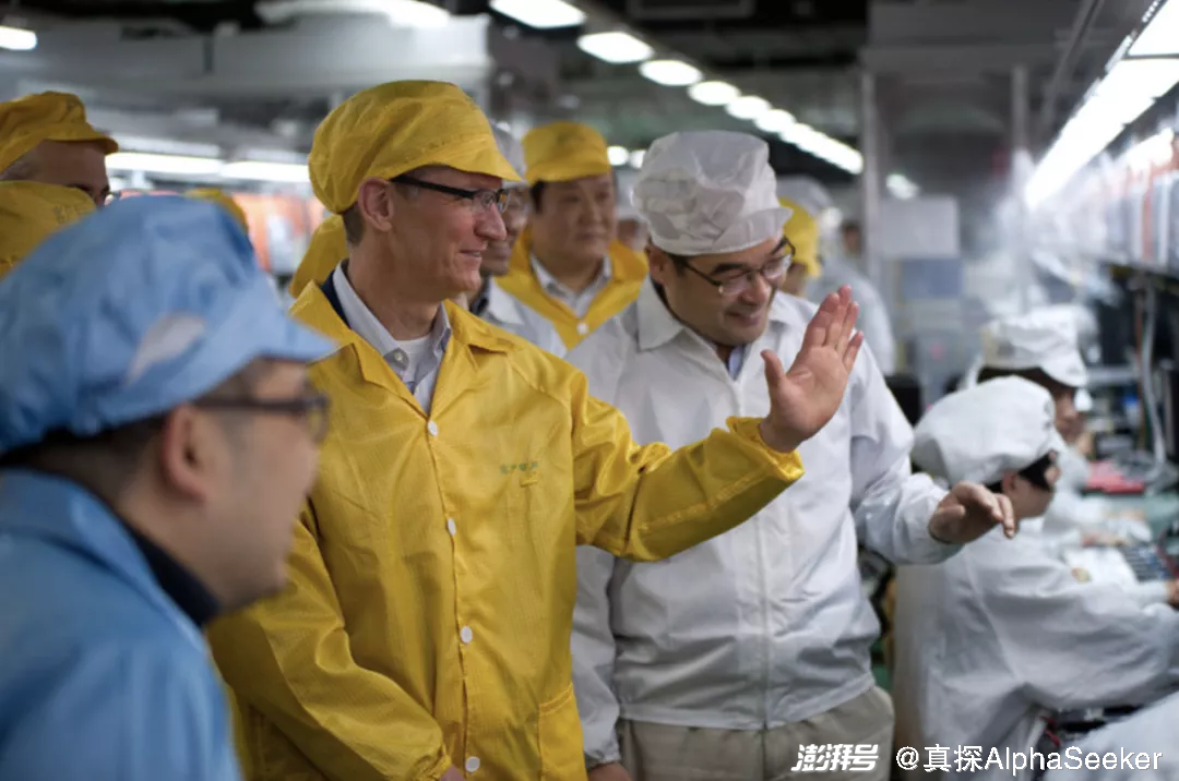 库克参观富士康的工厂 图源Bloomberg引入富士康,至少在两个方面对未来的苹果供应链产生了影响: