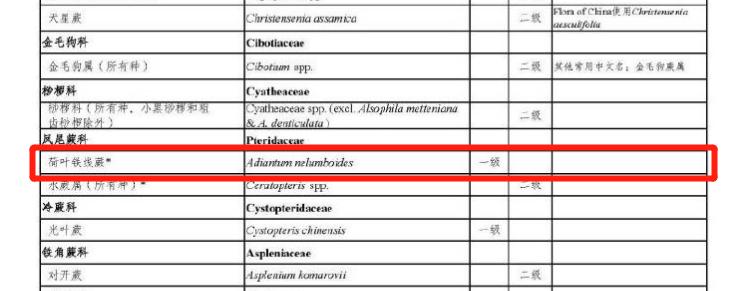 近期,调整后的《国家重点保护野生植物名录》正式公布,本次调整后的名录中,荷叶铁线蕨及秋海棠科植物系以及兜兰属大部分植物被列入国家保护植物名录。