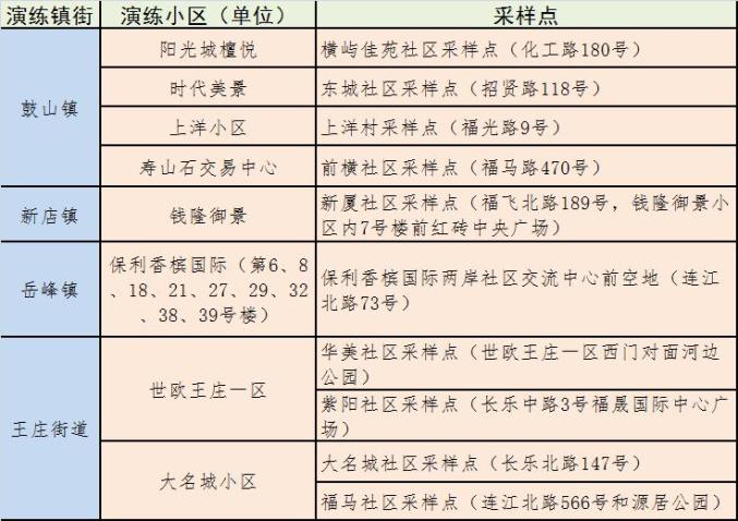 最新!福州这些地方核酸检测演练名单公布!