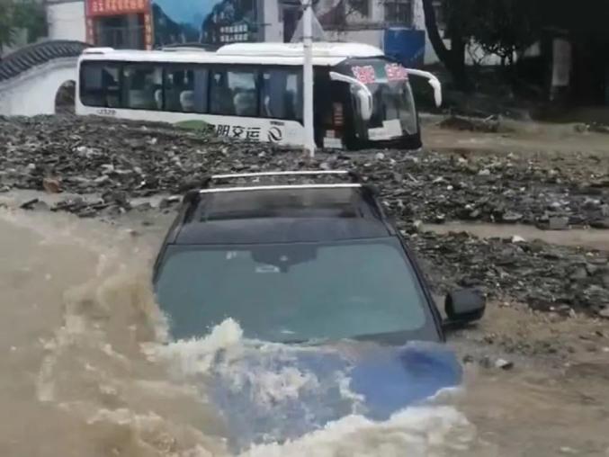 强降雨引发山洪泥石流,河南一景区附近数辆汽车被埋