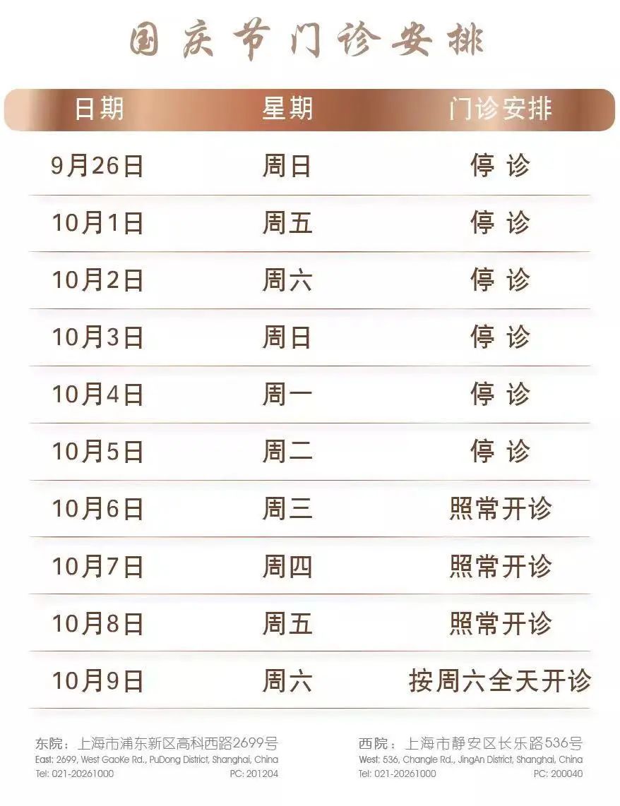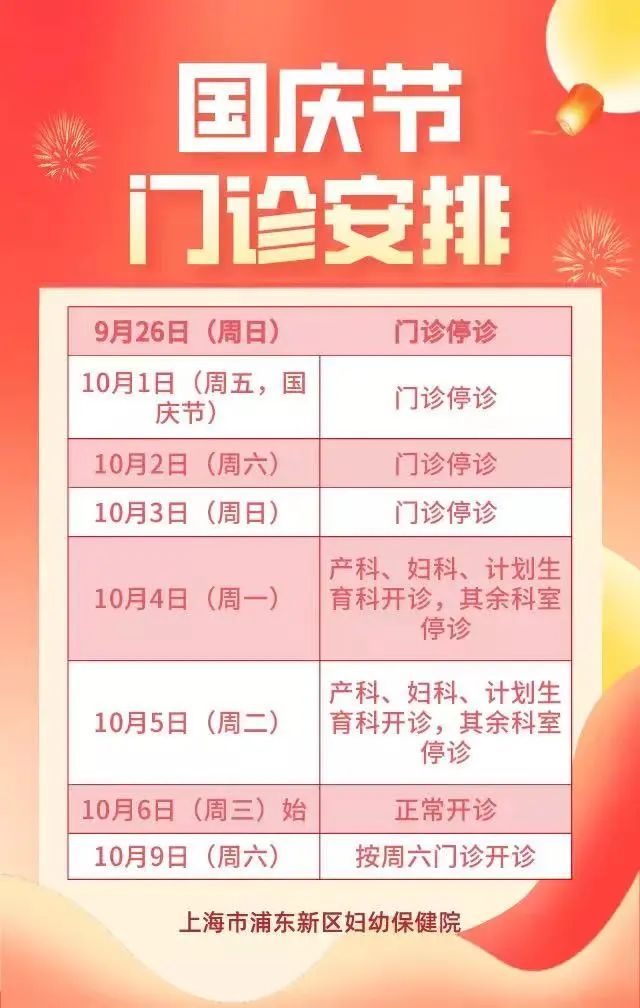国庆小长假,浦东各大医院门急诊安排→