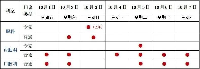 4、普通门诊安排(10月1日-7日):