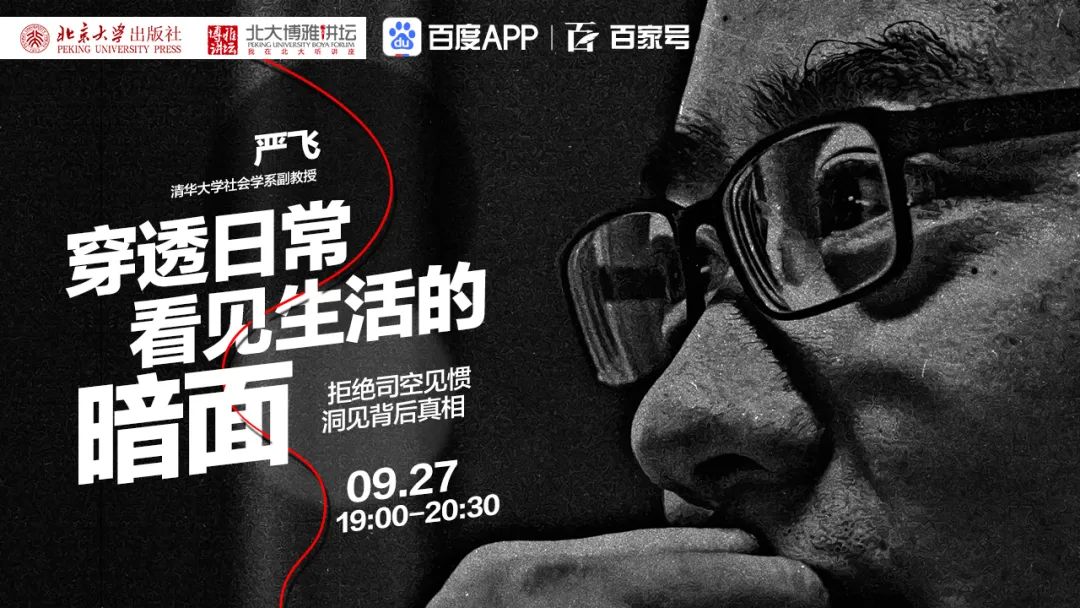 本期博雅讲坛,我们有幸邀请到清华大学社会学系副教授、副系主任,博士生导师,《清华社会学评论》执行主编,教育部“青年长江学者”严飞老师,来为我们分享“社会学的穿透力”。