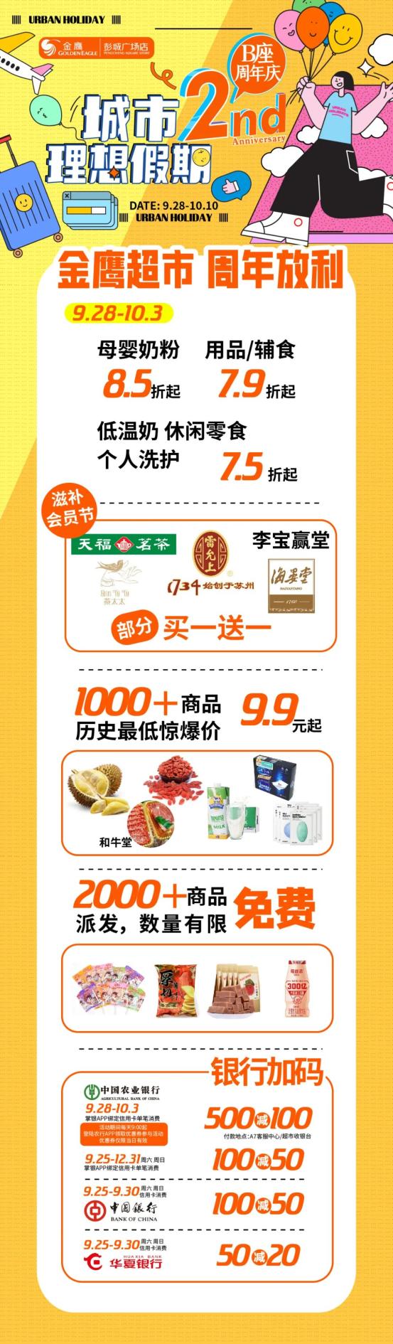 都说生日要有仪式感,没错,此次B座2周年生日趴,金鹰超市超多福利全城发放!