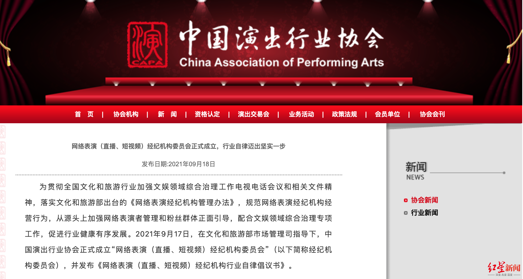 9月17日,中国演出行业协会成立“网络表演(直播、短视频)经纪机构委员会”