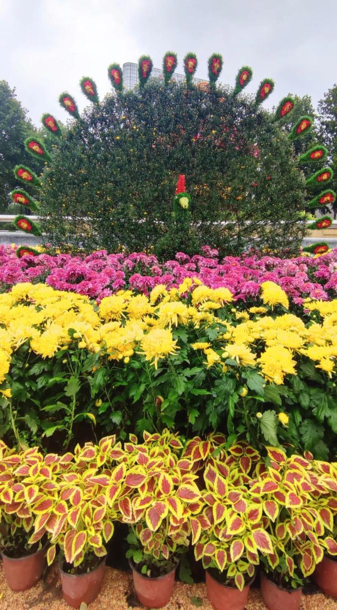 人民广场上,孔雀开屏的菊花造型