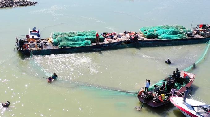 推船、下网、收网、拉纤,在超大渔网的捕捞下,从渔民的角度感受收获的喜悦。SONGYUAN · CHAGANHU
