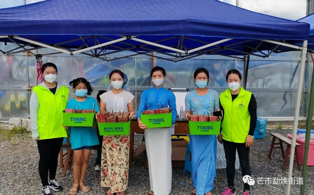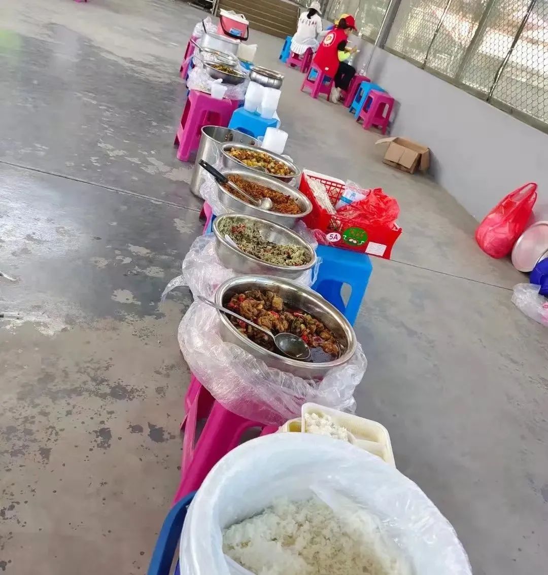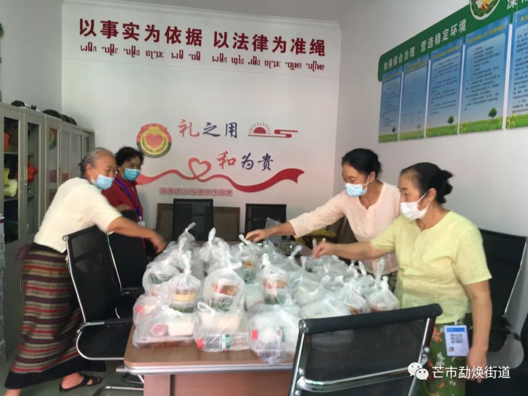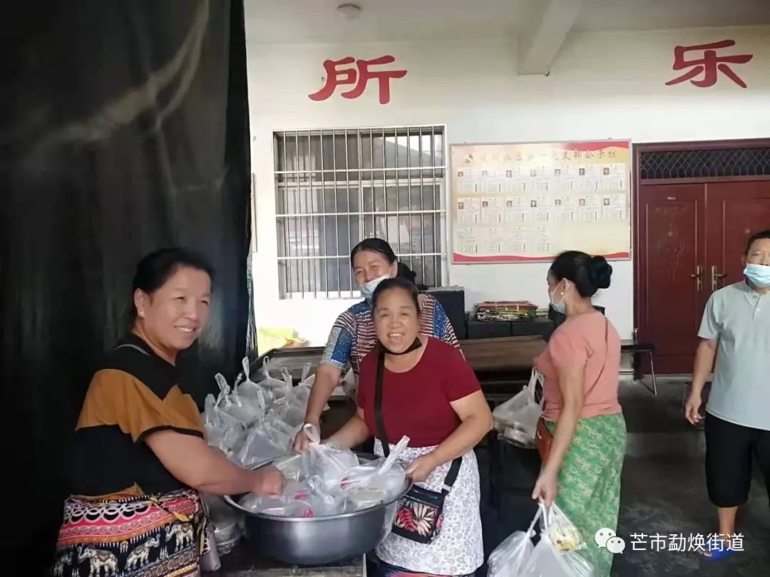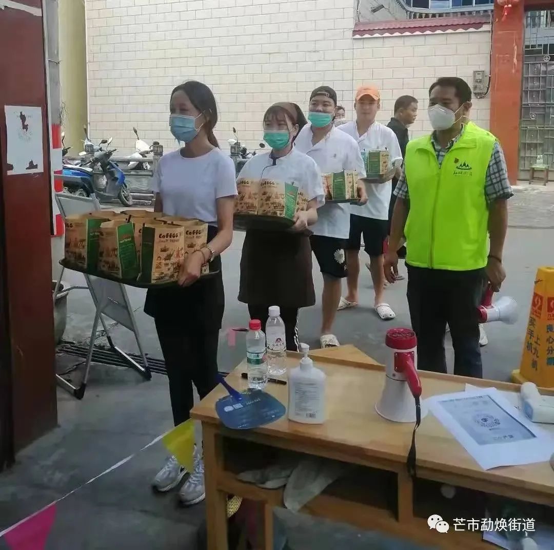 9月25日中午12点,西里“咩叭”们把150多份热腾腾的饭菜送到西南里社区和勐焕街道其他核酸检测点上,接过香喷喷的饭菜,工作人员疲惫的脸上洋溢着幸福的笑容。