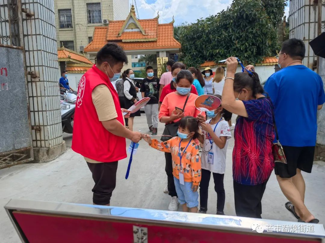 广电网络芒市分公司为排队等待的群众送上定制的“清凉小扇”