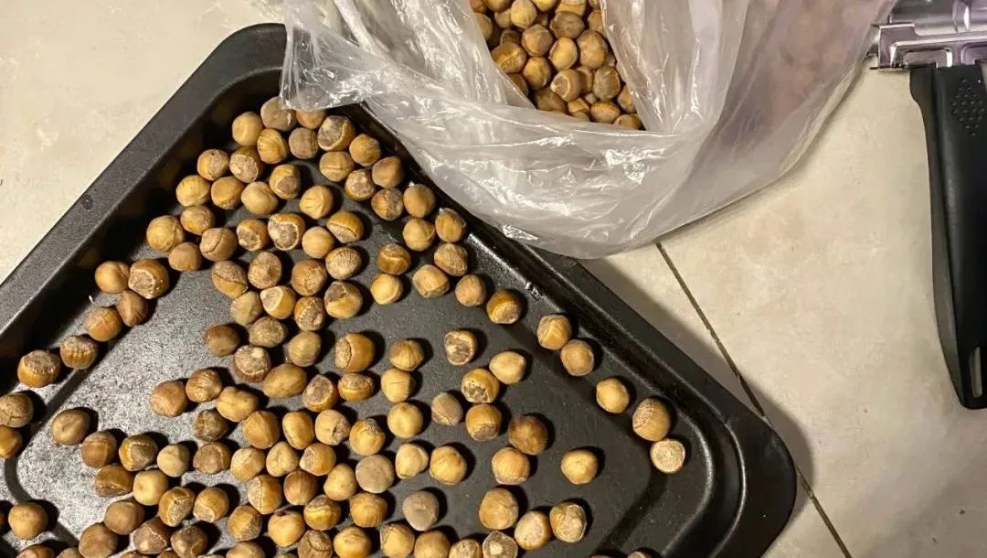 刚刚捡进塑料袋的榛子立马就被剥开壳子进入人们的肚子*微博@猪要变成超级马甲线
