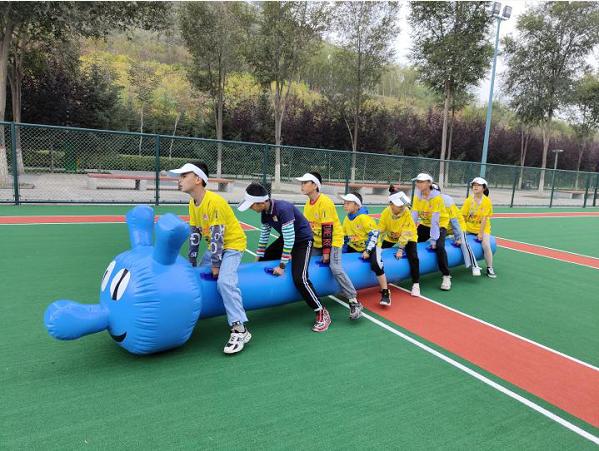 团结协作我发扬。集中进入营地后,小营员们通过参与破冰、分组、选拔小分队队长、制定营规等环节,快速融入到新的集体,并出色地完成了小组FVC成果展示。四支队伍——“欢乐小黄人队”“石榴队”“启明星队”“勇敢牛牛队”,自主选拔出的小队长分享了属于自己小分队的约定。“我们小组的成员来自不同的民族,我们每一个人要像石榴籽一样紧紧团结在一起”,“石榴队”队长这样说。随后,四个小分队开展了趣味小组PK,此次PK环节,不仅增强了团队凝聚力,也强化了团队纪律性。拼搏精神我传承。体育项目参与环节采用新颖的体验式教育,致力于让小营员们在锻炼强健体魄、磨炼坚强意志的同时,养成乐观向上、迎难而进的心理品格。旱地冰球、足球和篮球等的“赛场”上士气如虹、激情碰撞,小营员们尽情挥洒汗水,每一步的尝试与飞跃都是对身体和心理素质的突破。“今天的活动让我们更加体会到团结的重要性,我们参与活动重要的不是名次,而是和小伙伴一起体验努力的过程”,来自古城台小学的齐其格小朋友说道。