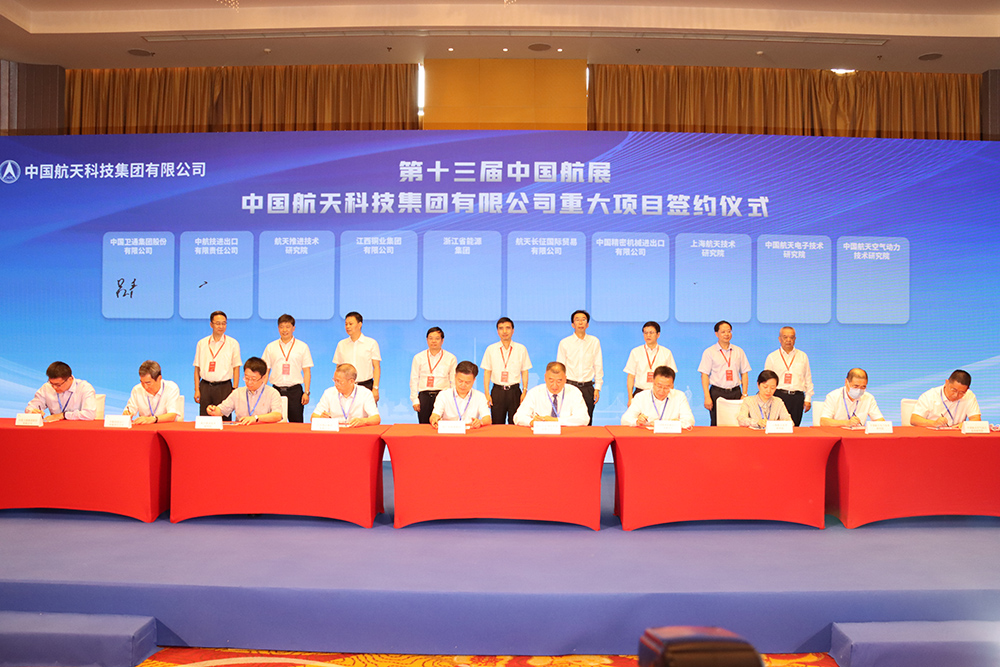9月29日,在珠海航展上,中国航天科技集团有限公司举行重大项目签约仪式,与国家相关部门、地方政府、企业集团等签署了50余项合作协议及合作意向,累计签约金额近500亿元,再创集团公司珠海航展签约金额历史新高。