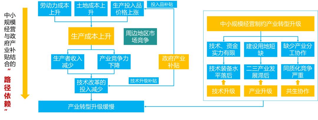 一是禁止产业增多,农村畜牧业、农副食品加工、食品制造等行业被列入新增产业禁限目录,相关企业外迁,产业处于转型和升级改造阶段。