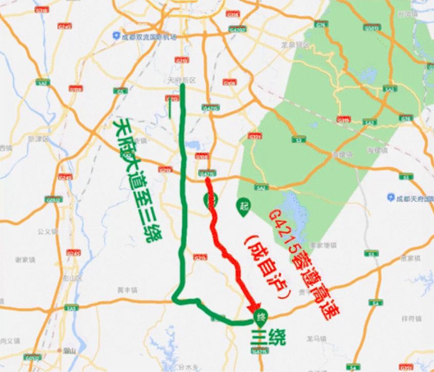 绕行方式:经天府大道、仁寿大道等国省干道及快速通道绕行至SA3成都经济区环线高速转换成自泸高速;或在S3成资渝高速通行正常时通过互通枢纽转换通行。
