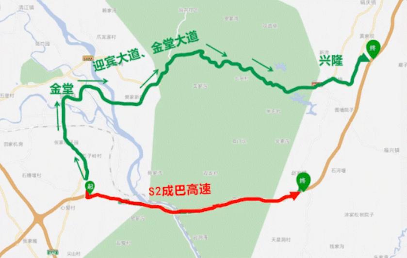 绕行方式:成都往巴中方向可从成巴高速金堂收费站出站转换迎宾大道、金堂大道从成巴高速赵家、兴隆收费站进入;巴中往成都方向可从成巴高速赵家收费站出站转换迎宾大道、金堂大道、成金青快速路返回成都。