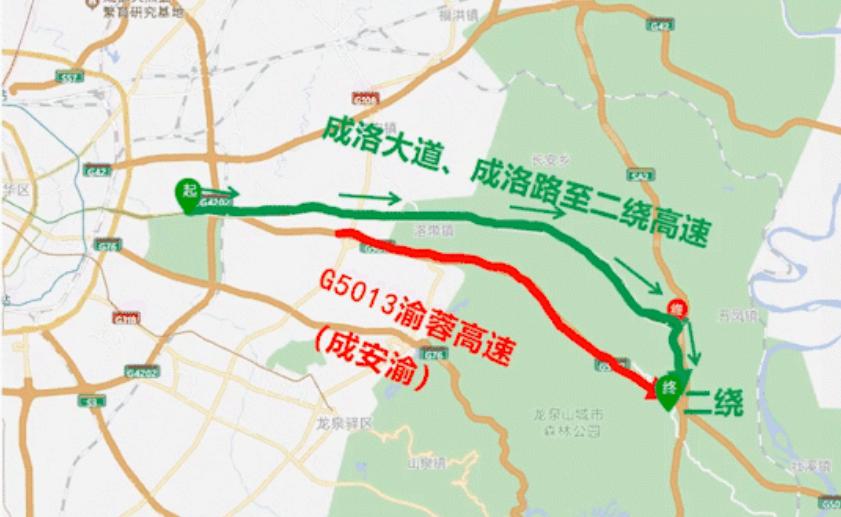 绕行方式:经成洛大道、五洛快速路进入第二绕城高速转换成安渝高速,或经环线高速转换成渝高速绕行。