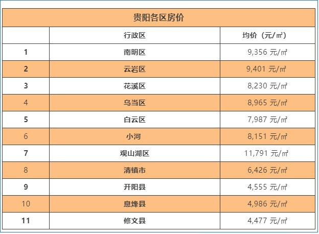 房价最高贵阳观山湖区(11,791 元/㎡ )