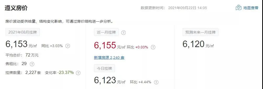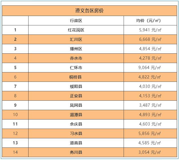 遵义平均房价6,155 元/㎡环比上月 +0.03%