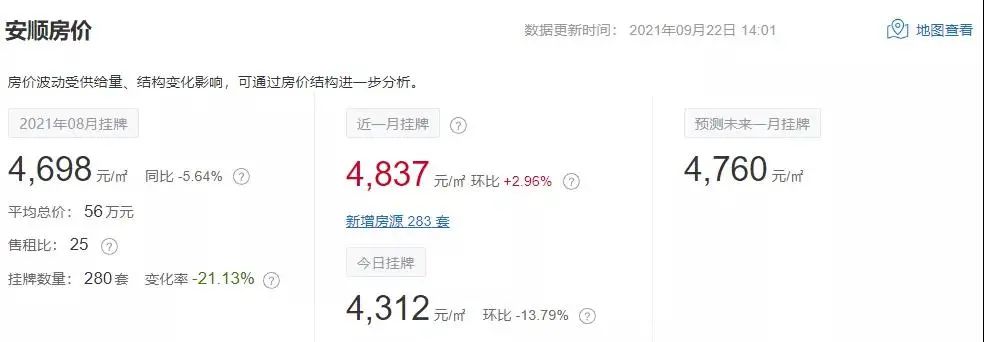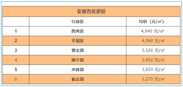 安顺平均房价4,837 元/㎡环比上月 +2.96%