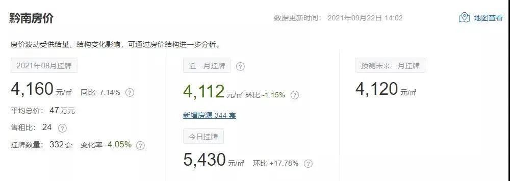 黔南州平均房价4,112 元/㎡环比上月 -1.15%
