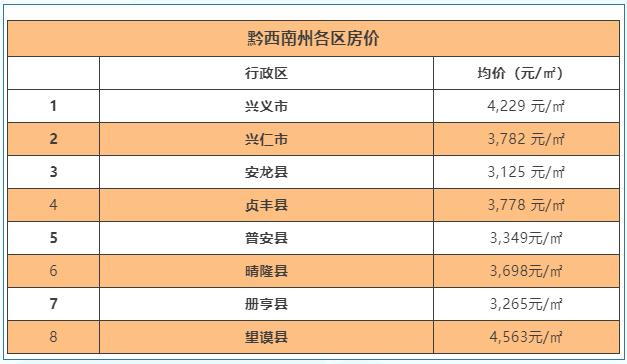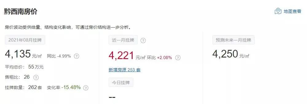 黔西南州平均房价4,221 元/㎡环比上月 +2.08%