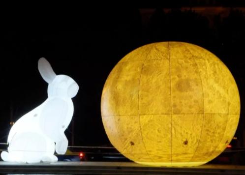 10m直径的超级大月亮与玉兔组合,营造中秋氛围~
