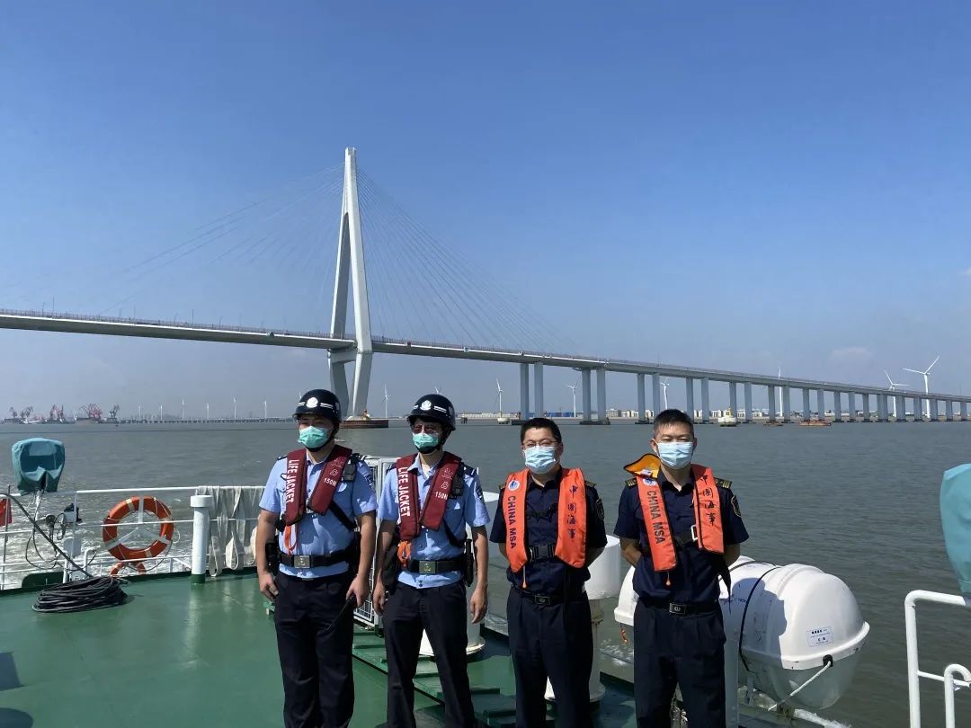 张海军副局长带队与嘉兴边防检查站乘坐“海巡0781”艇开展联合巡航执法活动,对杭州湾跨海大桥桥区、澉浦采掘区、主要航道、锚地等重点区域进行全面排查。