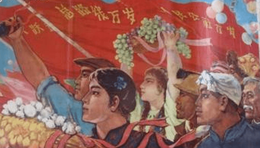 人民公社,大跃进,三面红旗高高飘扬在祖国各地,人民真正地渴望“土豆加牛肉”的共产主义生活,过上吃穿不要钱——按需分配的好日子,心里乐呵啊,处处听得到的是:社会主义好!