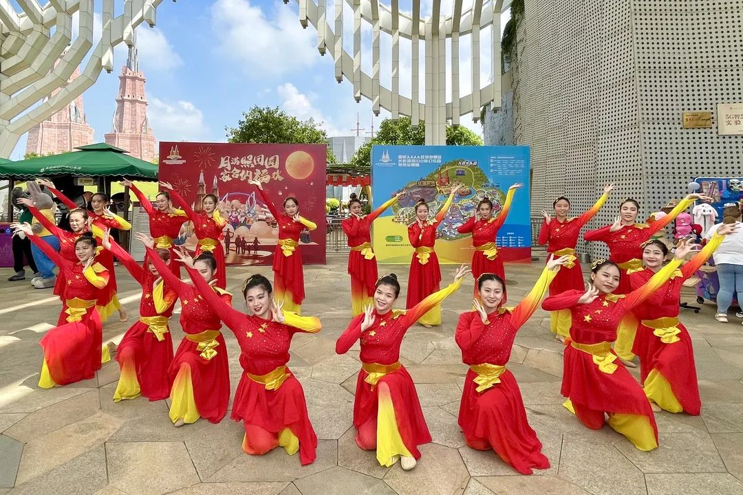 国庆第二天,海口A级以上景区人气持续旺盛。喜迎国庆,潮动长影。走进长影环球100奇幻乐园,放眼望去如同一片红色的海洋,一面面五星红旗迎风飞舞,一盏盏大红灯笼高高挂起,乐园内的可爱玩偶统统系上了鲜艳的红领巾,营造浓浓国庆氛围。