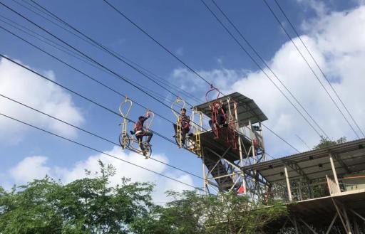 游客入农庄可享受高空自行车全长80米与地面落差感,骑行途中耳边山风习习,让市民游客在体验田园风情的同时,更加能够感受别样的刺激。