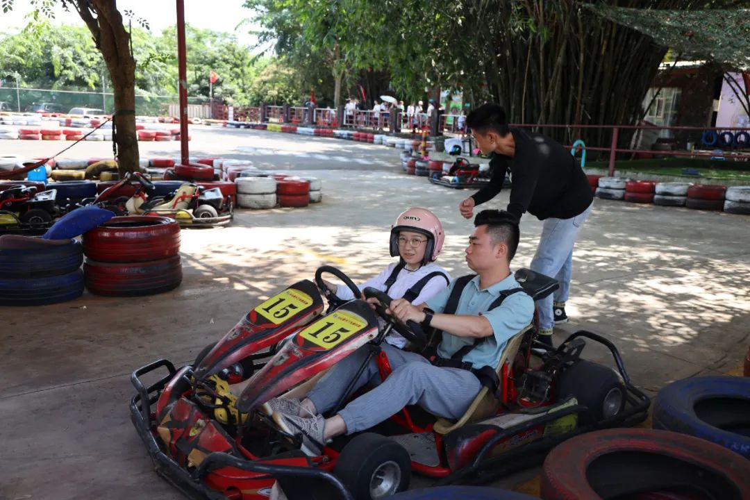 还可以720度全方位俯瞰火山泉的美景。家长带着小孩戴好头盔安全带一脚油门下去,极速卡丁车享受着速度与激情的狂飙。