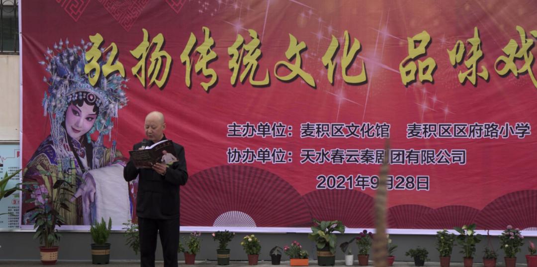 麦积区为营造校园戏曲文化氛围,让更多学生感受戏曲文化韵味与魅力。2021年9月28日,由麦积区文化馆、麦积区区府路小学主办的“戏曲进校园活动”来到麦积区区府路小学。