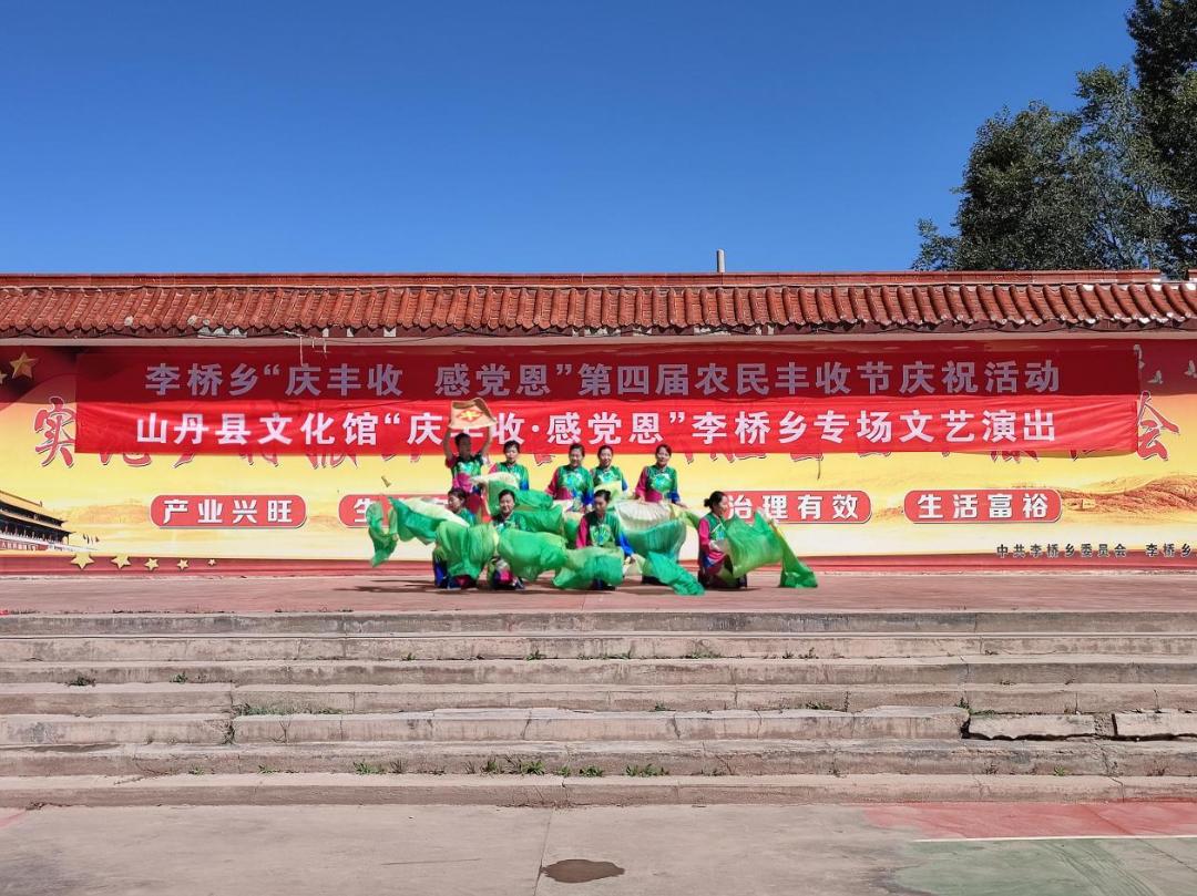 山丹县近日,山丹县文化馆“庆丰收·感党恩”文化惠民走基层演出、书画下乡和非遗产品展板展示活动在李桥乡上演,来自各乡镇的领导干部以及父老乡亲观看了演出,共庆丰收喜悦,共享乡村振兴丰硕成果。