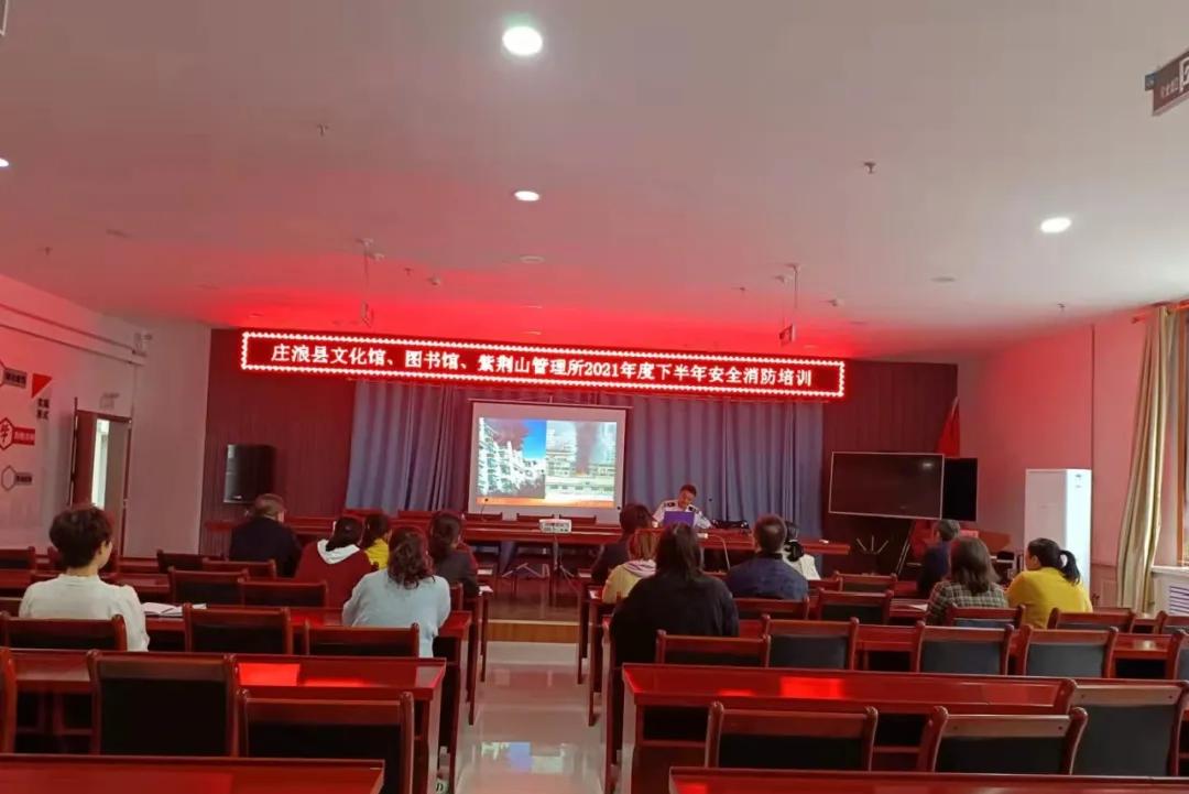 庄浪县为了进一步强化文化馆工作人员的消防安全意识,增强职工在发生火灾时的自救自护能力。9月28日上午,庄浪县文化馆、图书馆、紫荆山管理所邀请平凉市亿安消防宣传大队穆海鹏教官举行了消防安全知识暨消防演练培训。全体工作人员参加了培训会。