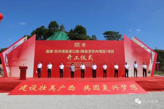 9月28日,鹿寨至钦州港高速公路(横县至钦州港段)项目在钦州市灵山县伯劳镇开工仪式。