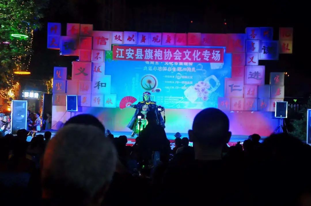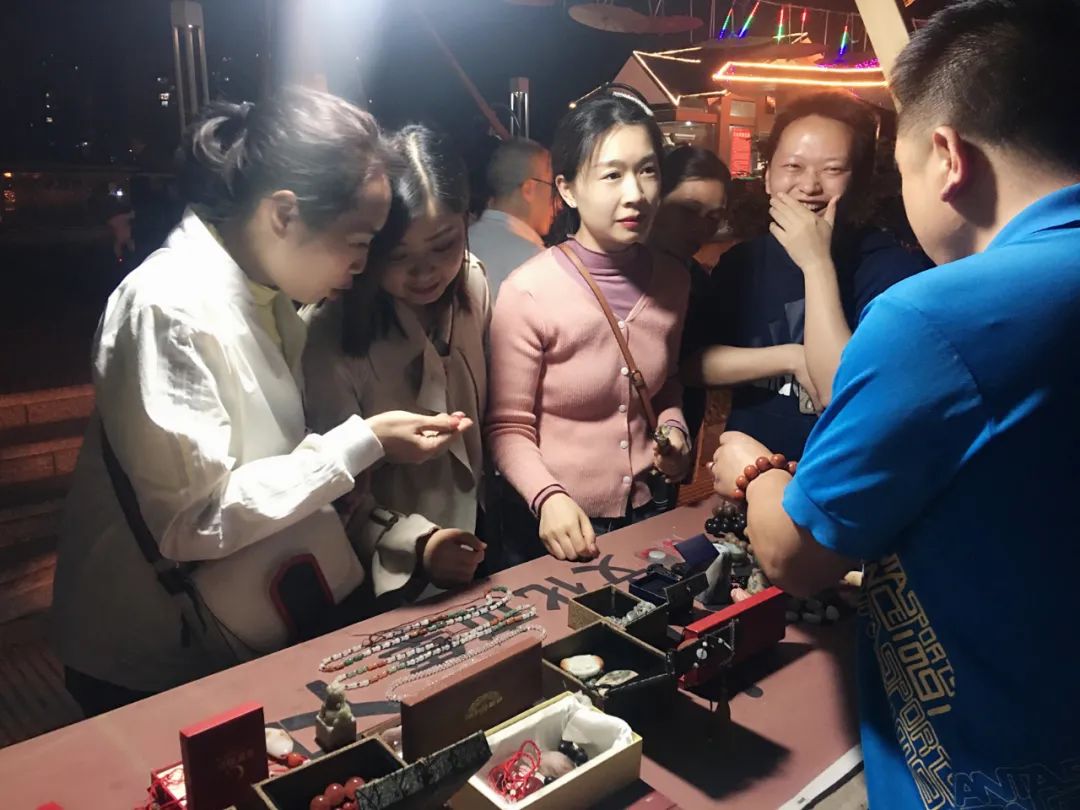 夜市位于江安县淯江二桥河畔滨江路西段,设置有百姓大舞台、书吧、“江安味道”展示直播区、古玩收藏区、长江石一条街、竹工艺手作区、书画摄影区、小吃美食和休闲茶饮区。江风拂面,漫步夜市,很是惬意。