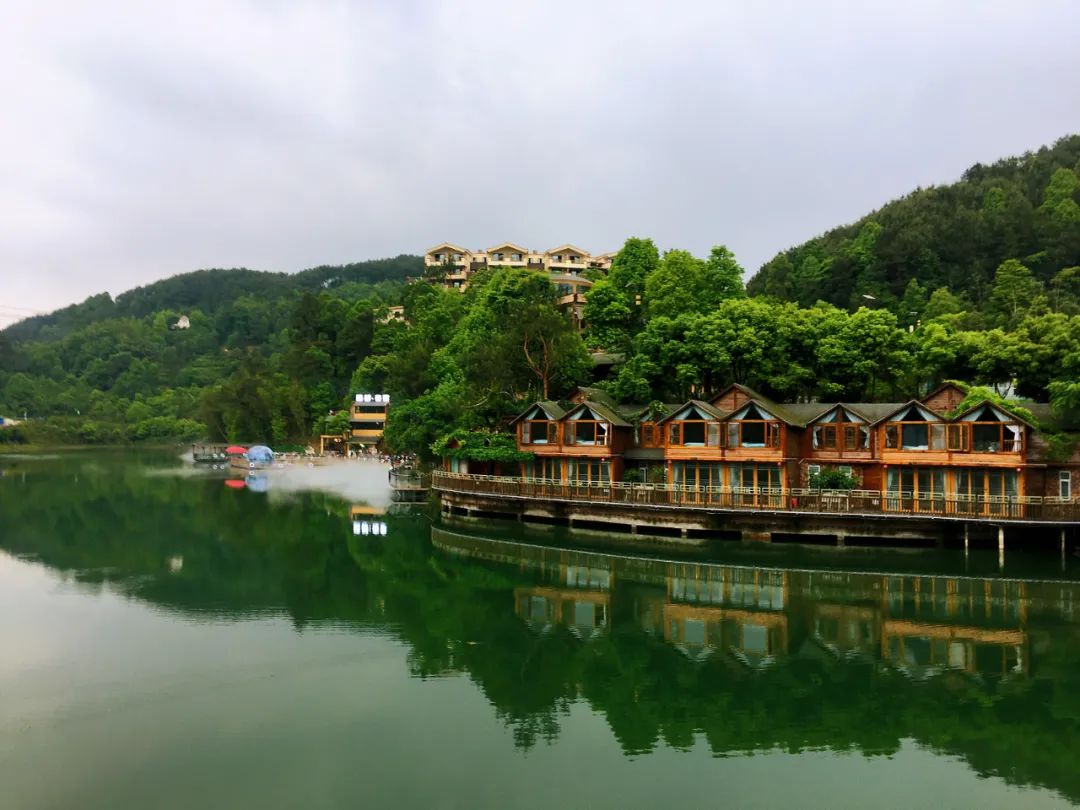 高县推荐食宿大雁岭风景区内的林峰山庄。沿湖小木屋风景独好,晚饭可以在山庄内品尝“酒都夜宴”,湖光山色中,吃着火锅看表演。