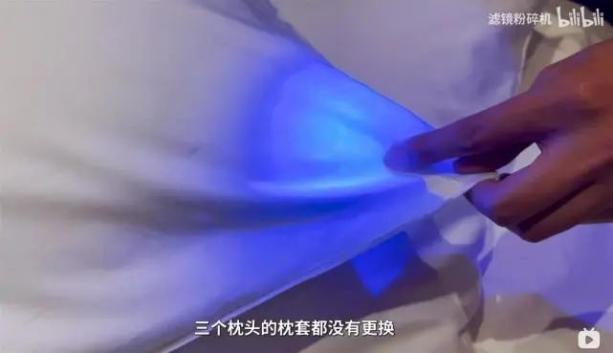 视频中称,团队成员于今年9月底的非周末时间,分别入住了该度假区内的环球影城大酒店功夫熊猫主题房和诺金酒店的豪华双大床房,退房前在房间内加盖了可以轻松冲洗擦拭掉的隐形荧光标记,第二天退房后换人入住同一房间,进行“一客一换”检查。