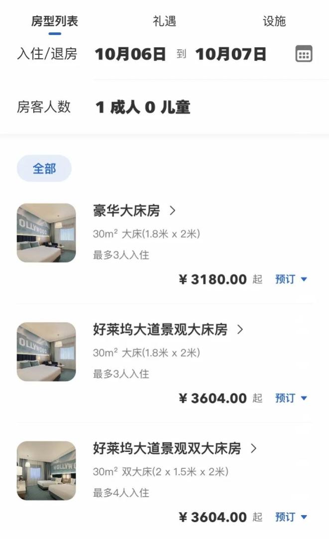 园区官方平台所显示的环球影城大酒店部分可订房型及价格。南都记者了解到,上述两家酒店为目前北京环球度假区内仅有的两家酒店,今年9月20日随园区正式对外营业,住客能在每日开园时间之前提前入园,并能通过酒店专属通道,快捷地进入环球影城主题公园。“十一黄金周”期间,园区官方预订平台显示的可订房价多在每晚3000元以上。据介绍,环球影城大酒店、诺金度假酒店,均由首旅集团及凯宾斯基酒店集团合资成立的凯燕国际负责管理运营。