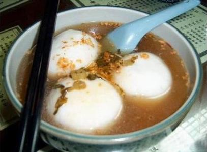 资料图露水汤圆是柳州特有的小吃,与传统的汤圆不同,露水汤圆的个头比较大,而且是咸味的。不油不腻。