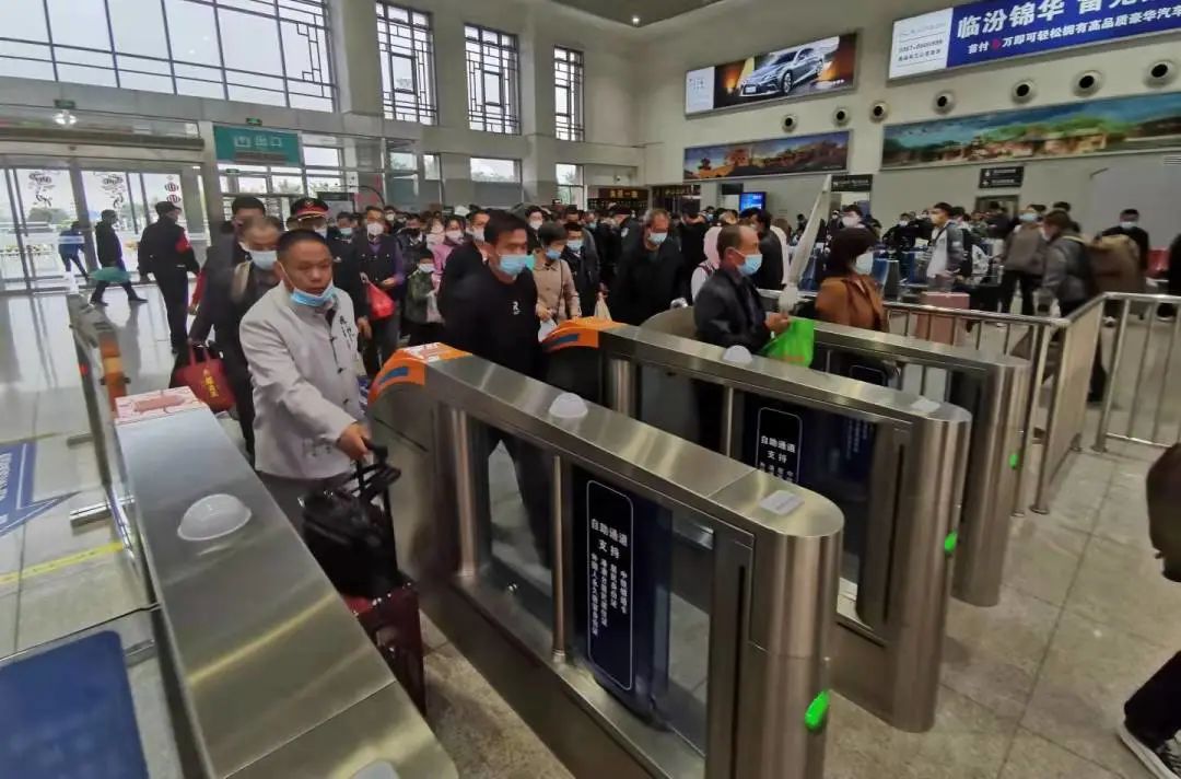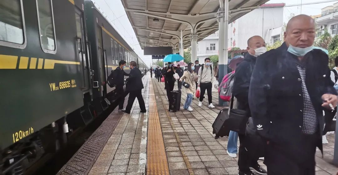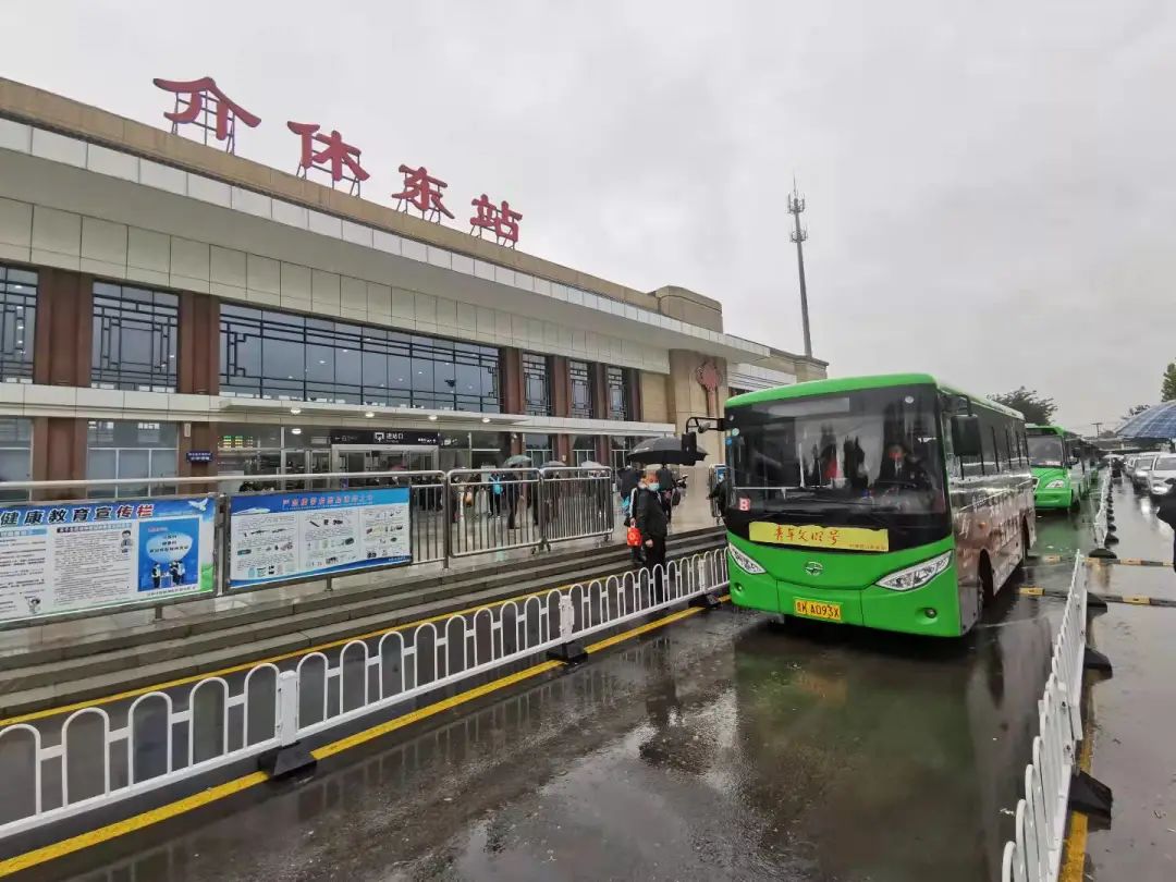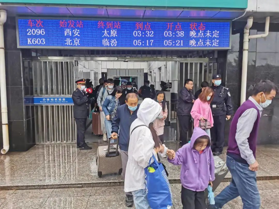 9:50分K865次到站,共组织下车旅客406人,其中介休本站下车126人,其余280人由12辆公交车并由1辆警车带道转运至介休东站,乘坐临时加开列车55923次(太原—运城北)12:18分从介休东发车。